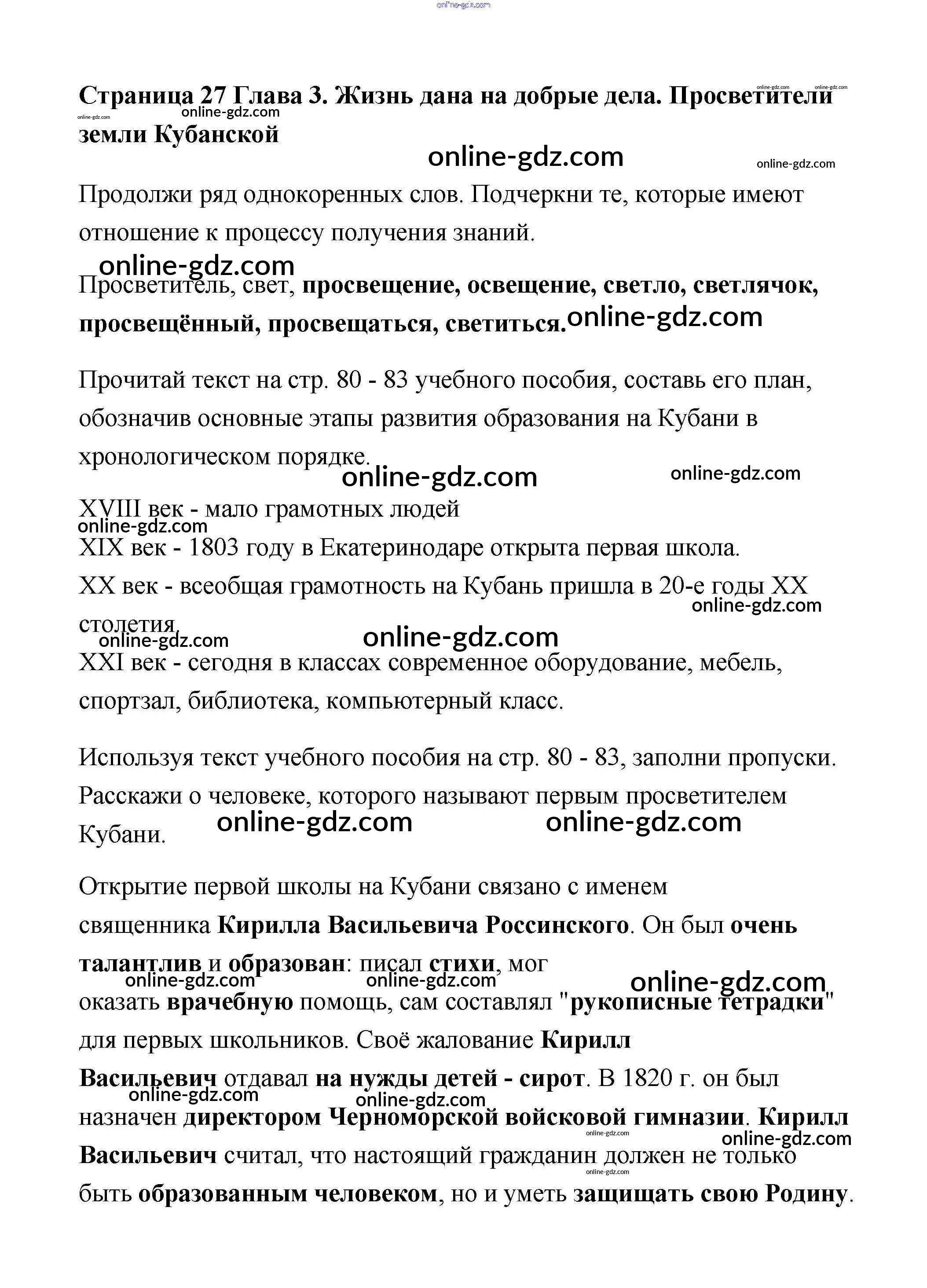Готовые домашние задания по Кубановедению за 4 класс Рабочая тетрадь Науменко 2020 - Страницы 27
