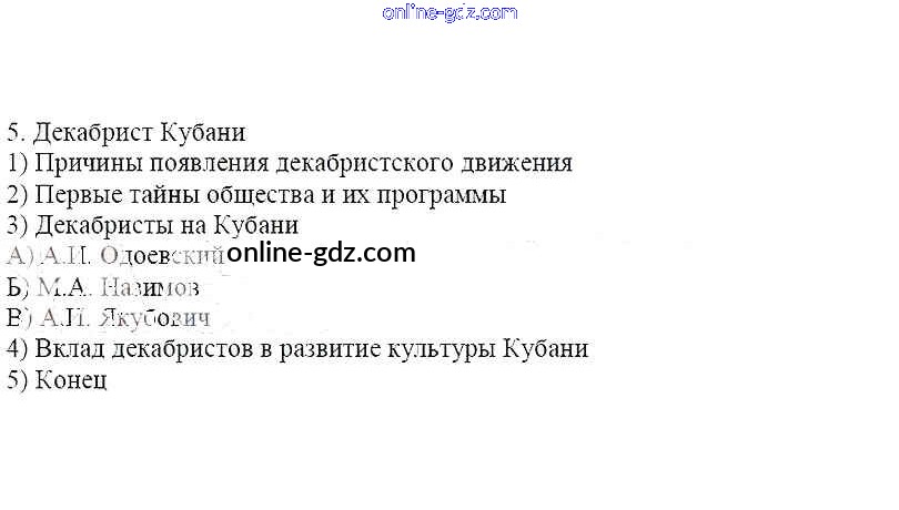 Готовые домашние задания по Кубановедению за 8 класс Рабочая тетрадь Гриценко 2018 - § 3. Черноморцы в Отечественной войне 1812 г. Декабристы на Кубани 5