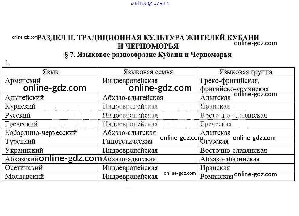 Готовые домашние задания по Кубановедению за 8 класс Рабочая тетрадь Гриценко 2018 - § 7. Языковое разнообразие Кубани и Черноморья 1