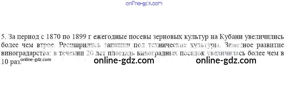 Готовые домашние задания по Кубановедению за 8 класс Рабочая тетрадь Гриценко 2018 - § 15-16. Территориально-административные преобразования в регионе Хозяйственно-экономическое развитие Кубани во второй половине XIX века 5