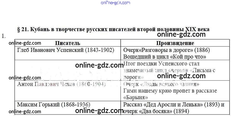 Готовые домашние задания по Кубановедению за 8 класс Рабочая тетрадь Гриценко 2018 - § 21. Кубань в творчестве русских писателей второй половины XIX века 1