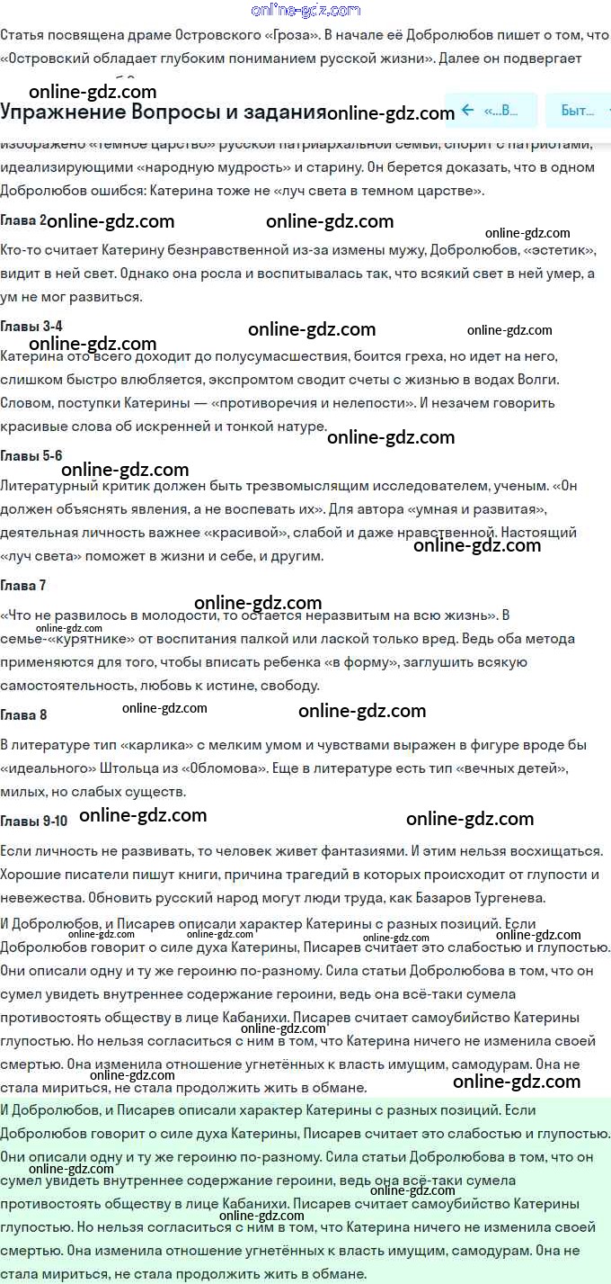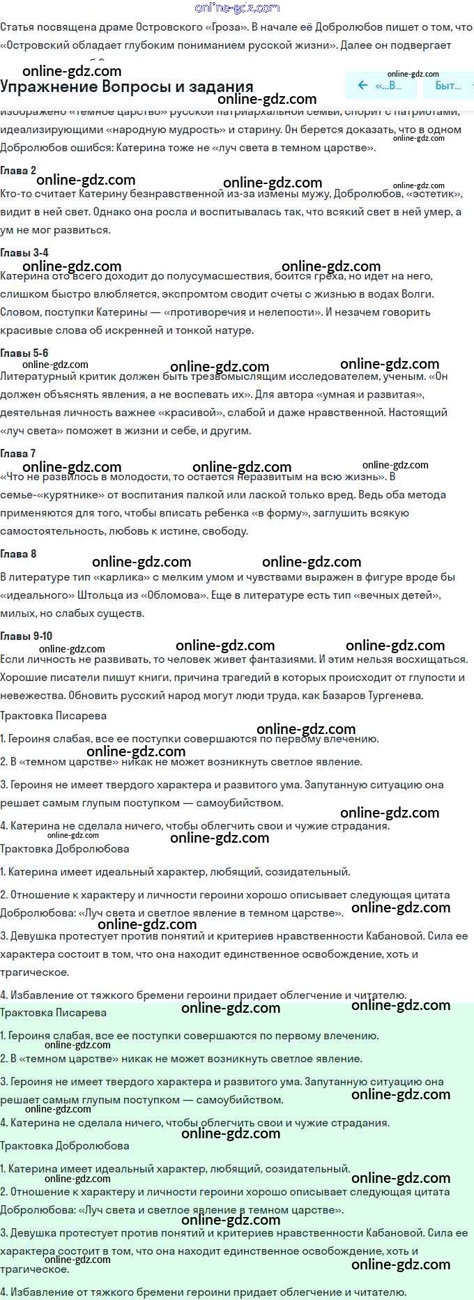 Готовые домашние задания по Литературе за 10 класс Учебник Зинин, Сахаров Инновационная школа Базовый уровень 2019 - Часть 1. Страницы 116