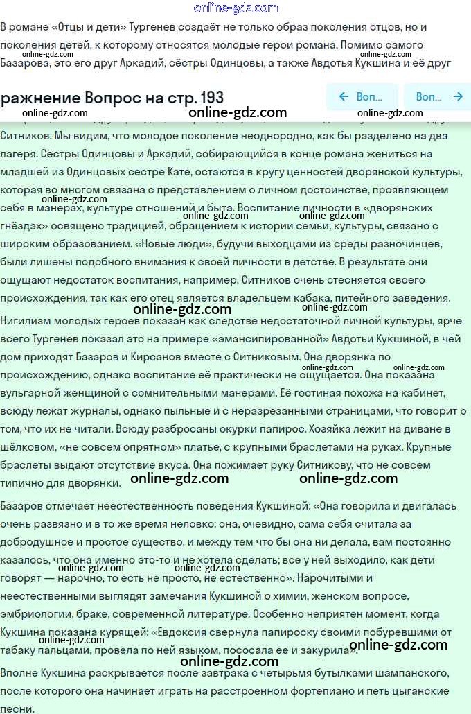 Готовые домашние задания по Литературе за 10 класс Учебник Зинин, Сахаров Инновационная школа Базовый уровень 2019 - Часть 1. Страницы 193