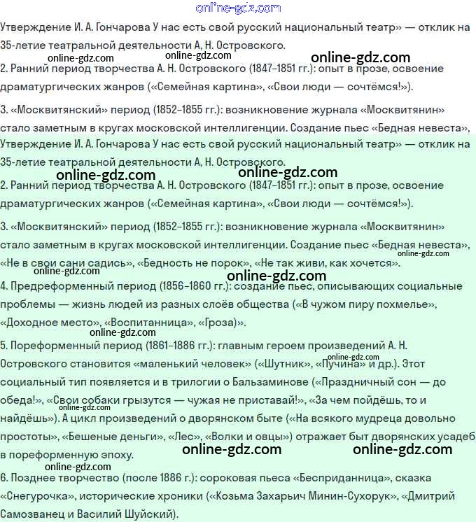 Готовые домашние задания по Литературе за 10 класс Учебник Зинин, Сахаров Инновационная школа Базовый уровень 2019 - Часть 1. Страницы 96