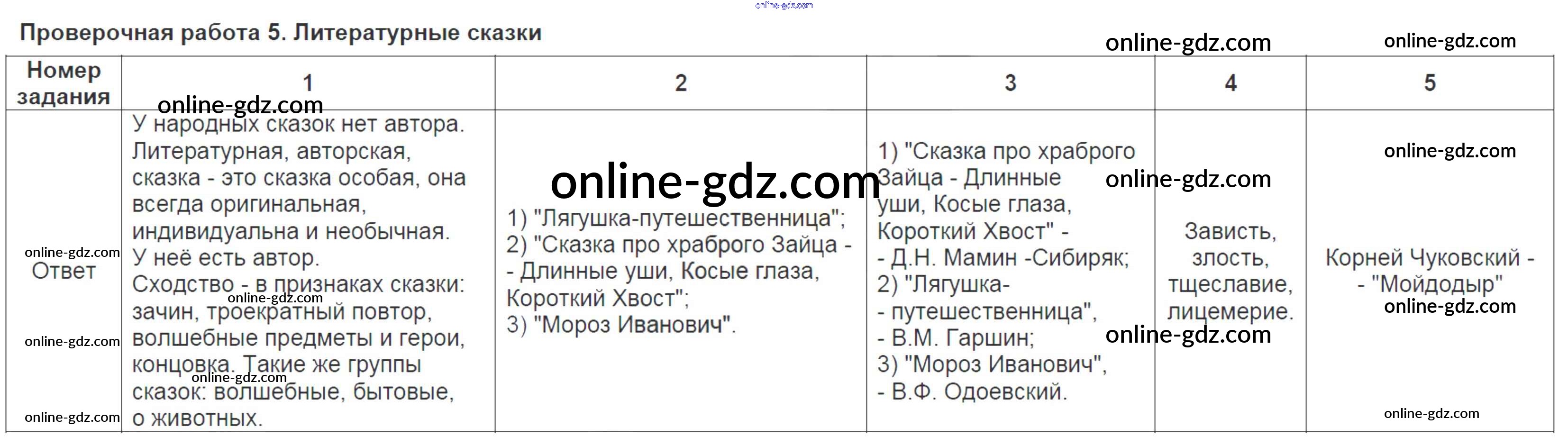 Готовые домашние задания по Литературе за 3 класс Контрольно-измерительные материалы (КИМ) Кутявина 2017 - Проверочные работы 5
