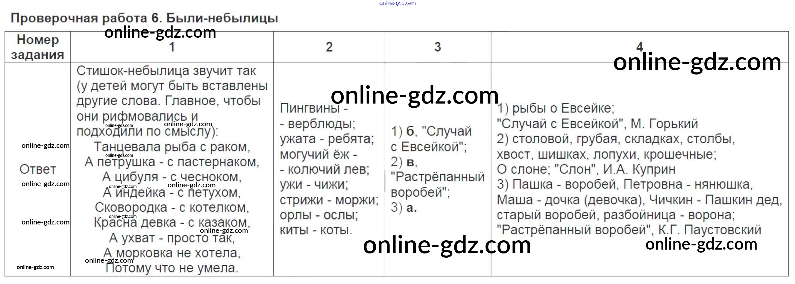 Готовые домашние задания по Литературе за 3 класс Контрольно-измерительные материалы (КИМ) Кутявина 2017 - Проверочные работы 6