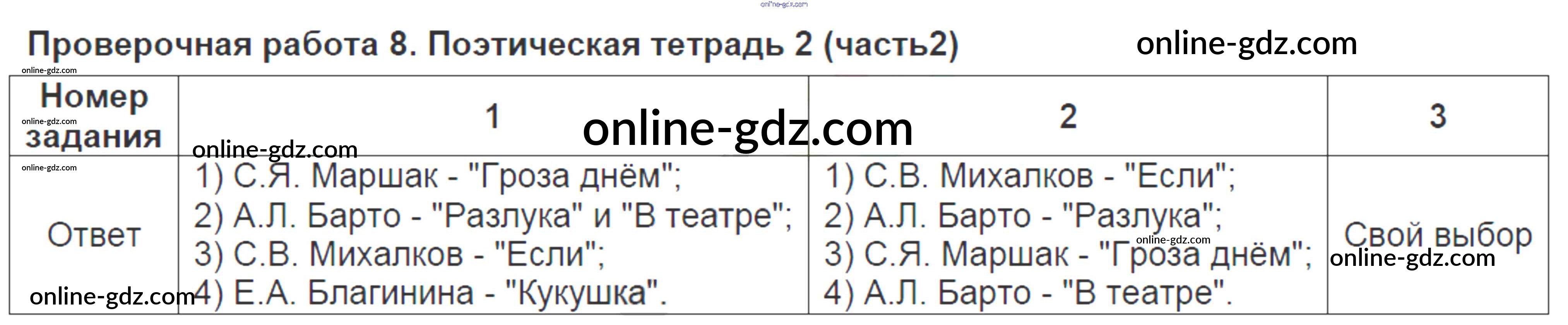 Готовые домашние задания по Литературе за 3 класс Контрольно-измерительные материалы (КИМ) Кутявина 2017 - Проверочные работы 8