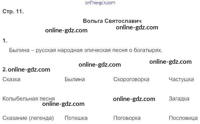Готовые домашние задания по Литературе за 4 класс Рабочая тетрадь Ефросинина Начальная школа XXI века 2020 - Часть 1. Страницы 11