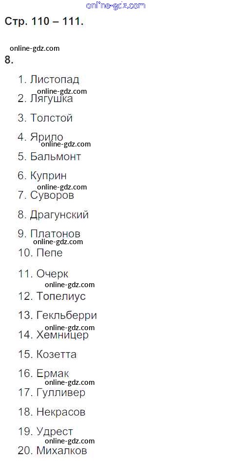 Готовые домашние задания по Литературе за 4 класс Рабочая тетрадь Ефросинина Начальная школа XXI века 2020 - Часть 1. Страницы 110