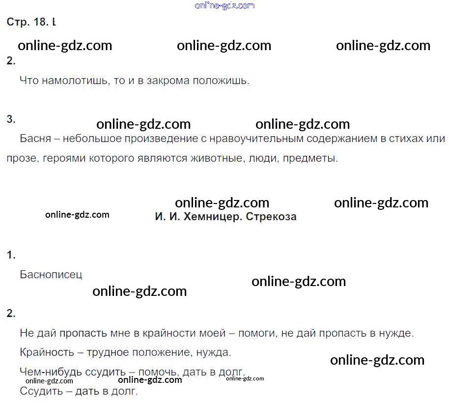 Готовые домашние задания по Литературе за 4 класс Рабочая тетрадь Ефросинина Начальная школа XXI века 2020 - Часть 1. Страницы 18