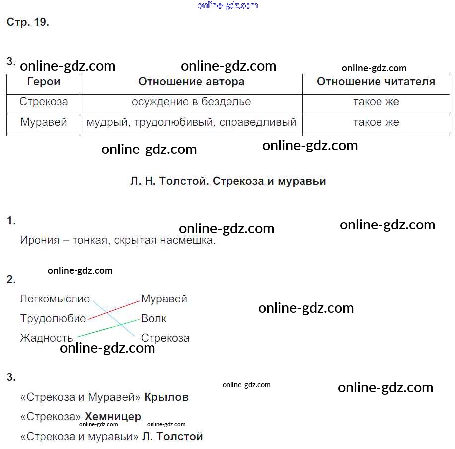 Готовые домашние задания по Литературе за 4 класс Рабочая тетрадь Ефросинина Начальная школа XXI века 2020 - Часть 1. Страницы 19
