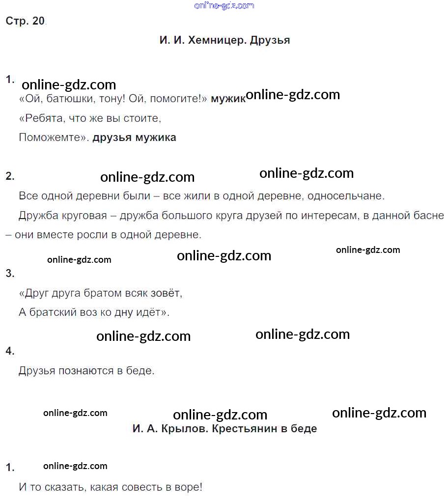 Готовые домашние задания по Литературе за 4 класс Рабочая тетрадь Ефросинина Начальная школа XXI века 2020 - Часть 1. Страницы 20