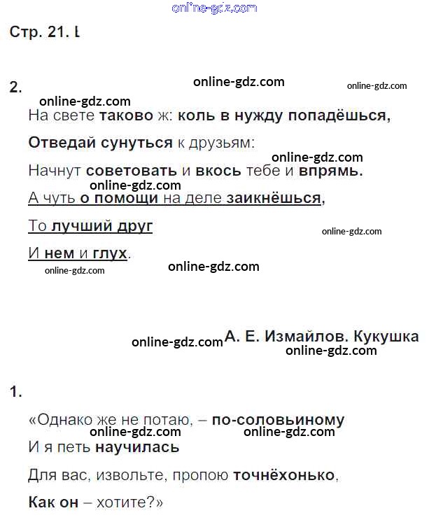 Готовые домашние задания по Литературе за 4 класс Рабочая тетрадь Ефросинина Начальная школа XXI века 2020 - Часть 1. Страницы 21