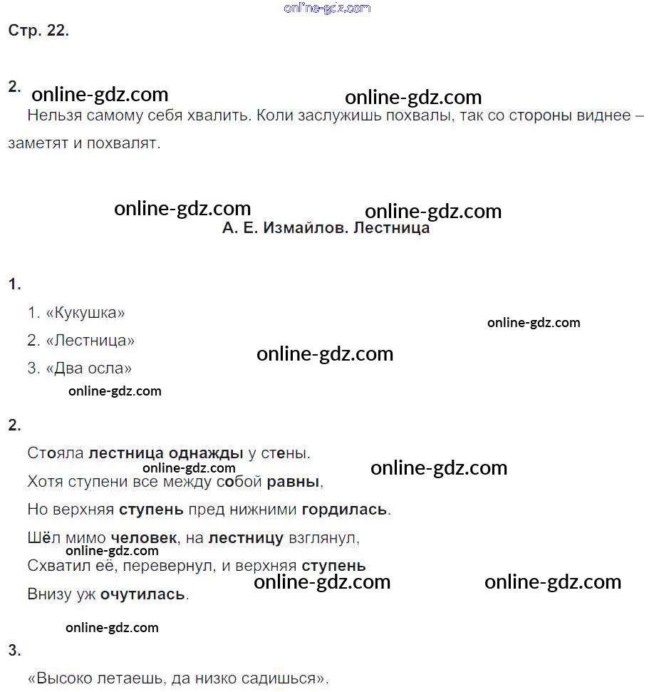 Готовые домашние задания по Литературе за 4 класс Рабочая тетрадь Ефросинина Начальная школа XXI века 2020 - Часть 1. Страницы 22
