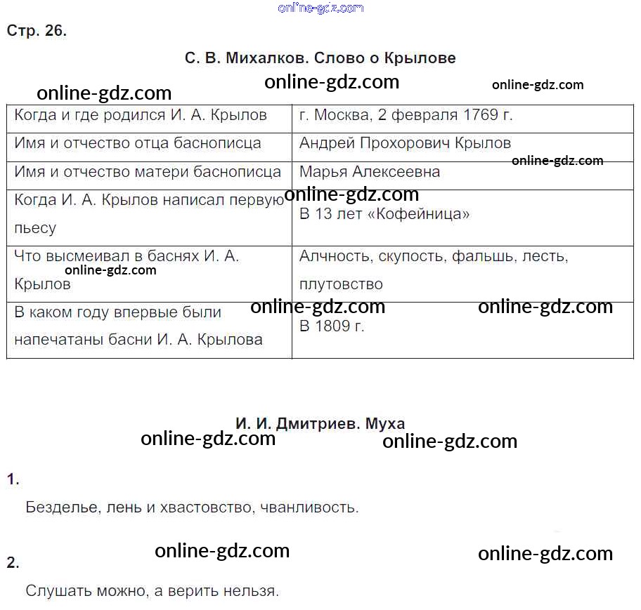 Готовые домашние задания по Литературе за 4 класс Рабочая тетрадь Ефросинина Начальная школа XXI века 2020 - Часть 1. Страницы 26