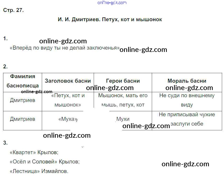 Готовые домашние задания по Литературе за 4 класс Рабочая тетрадь Ефросинина Начальная школа XXI века 2020 - Часть 1. Страницы 27