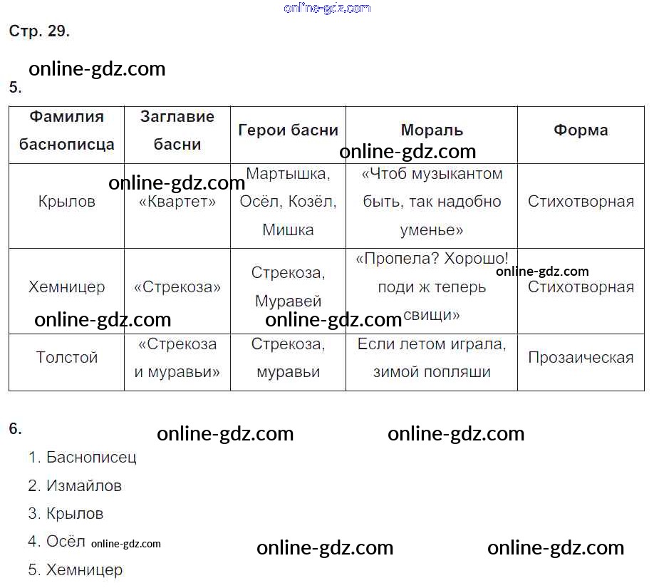 Готовые домашние задания по Литературе за 4 класс Рабочая тетрадь Ефросинина Начальная школа XXI века 2020 - Часть 1. Страницы 29