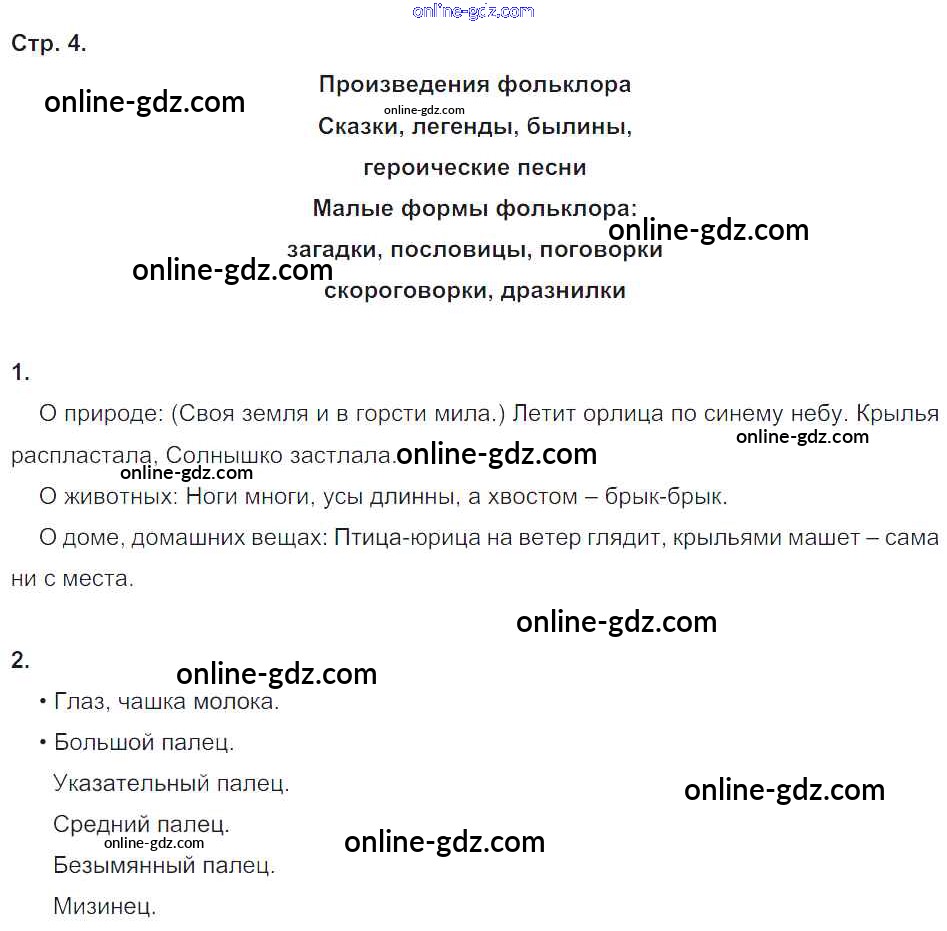 Готовые домашние задания по Литературе за 4 класс Рабочая тетрадь Ефросинина Начальная школа XXI века 2020 - Часть 1. Страницы 4