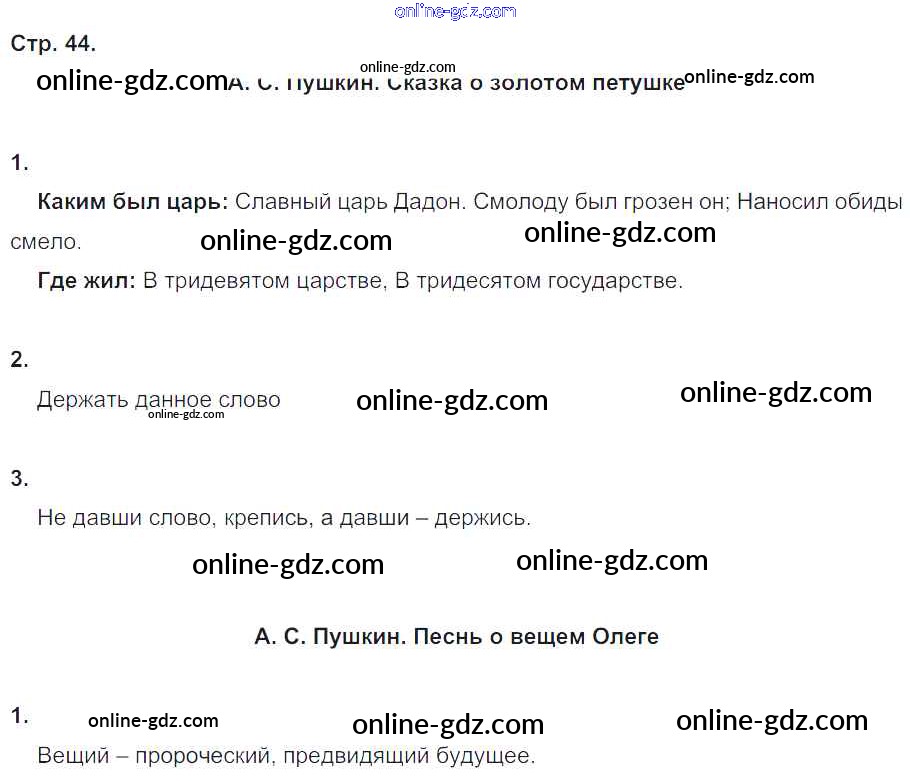 Готовые домашние задания по Литературе за 4 класс Рабочая тетрадь Ефросинина Начальная школа XXI века 2020 - Часть 1. Страницы 44