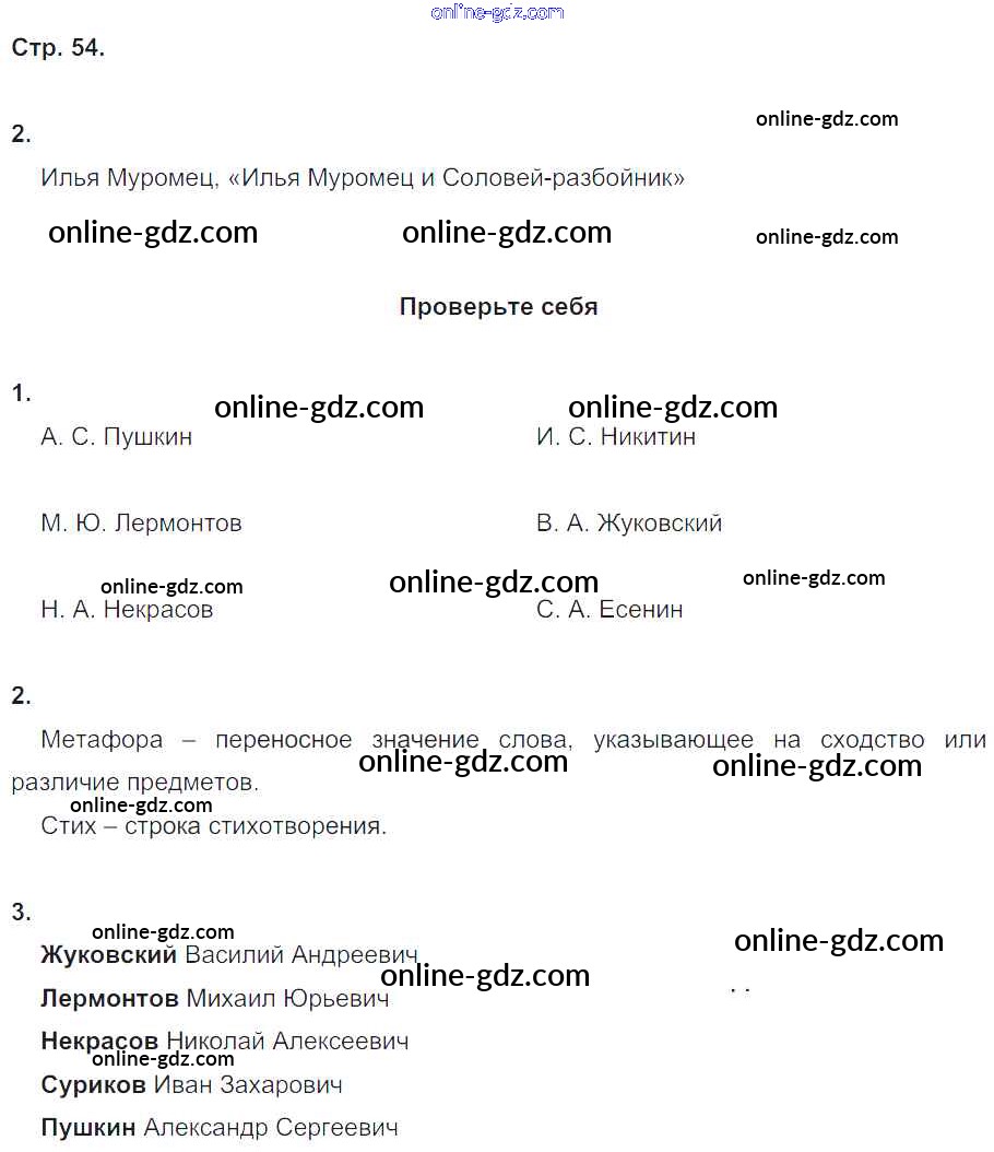 Готовые домашние задания по Литературе за 4 класс Рабочая тетрадь Ефросинина Начальная школа XXI века 2020 - Часть 1. Страницы 54
