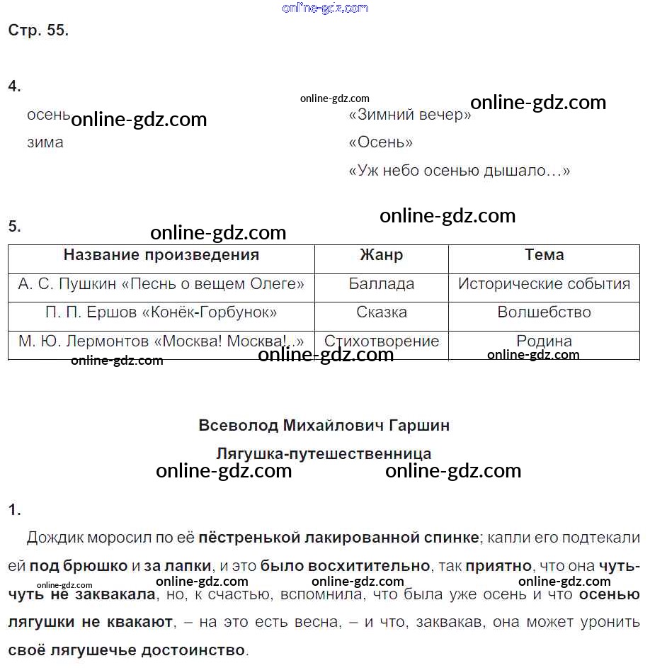 Готовые домашние задания по Литературе за 4 класс Рабочая тетрадь Ефросинина Начальная школа XXI века 2020 - Часть 1. Страницы 55