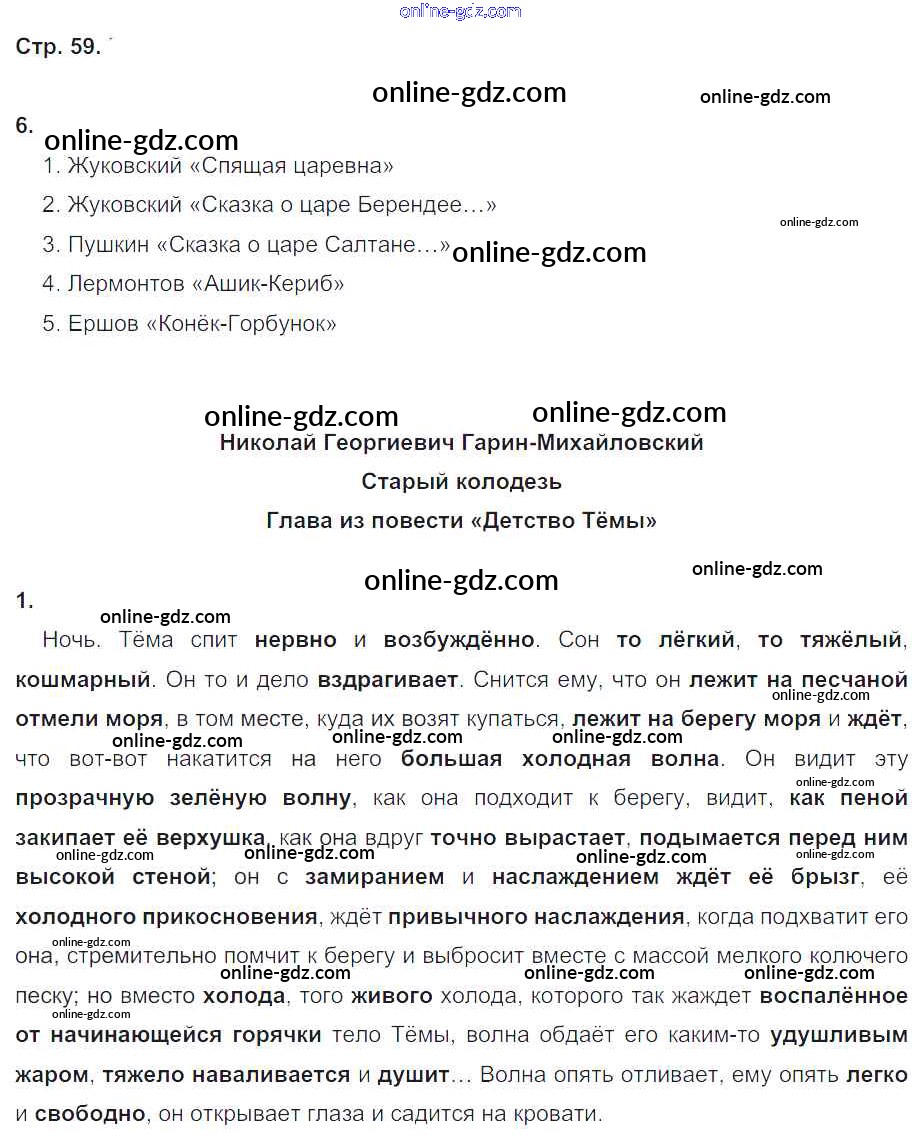Готовые домашние задания по Литературе за 4 класс Рабочая тетрадь Ефросинина Начальная школа XXI века 2020 - Часть 1. Страницы 59