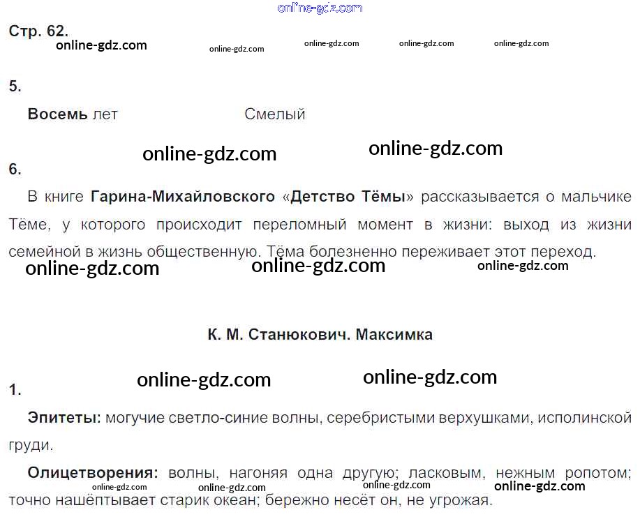 Готовые домашние задания по Литературе за 4 класс Рабочая тетрадь Ефросинина Начальная школа XXI века 2020 - Часть 1. Страницы 62