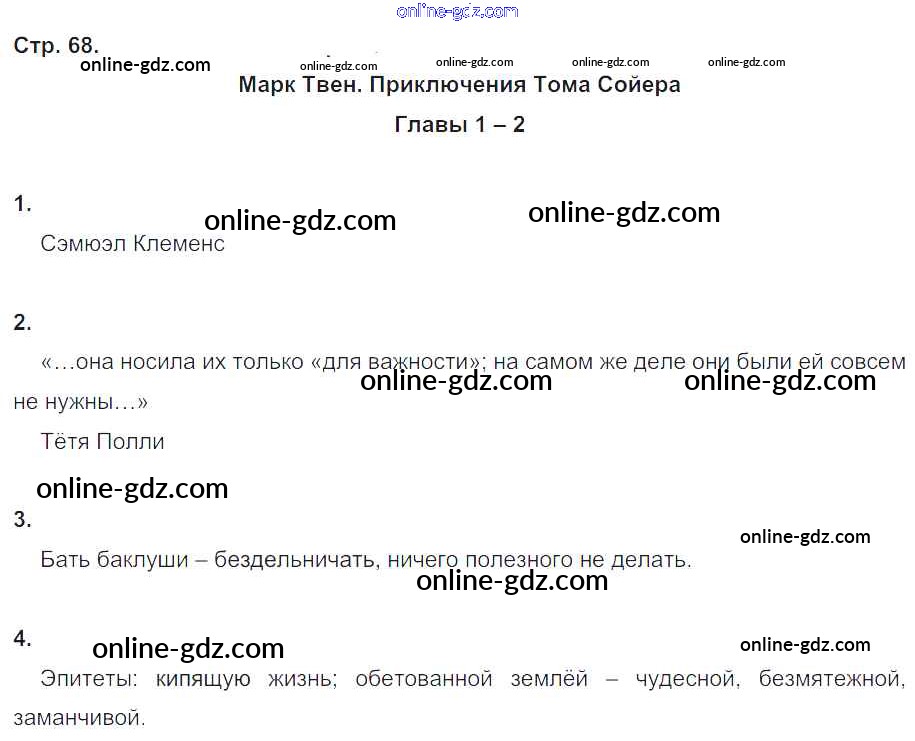 Готовые домашние задания по Литературе за 4 класс Рабочая тетрадь Ефросинина Начальная школа XXI века 2020 - Часть 1. Страницы 68