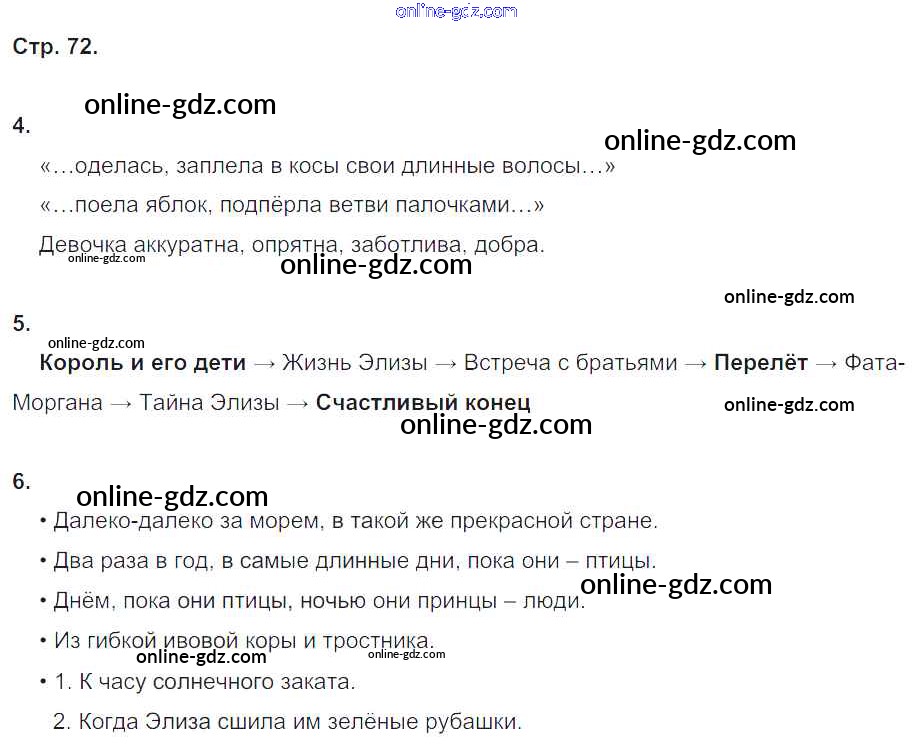 Готовые домашние задания по Литературе за 4 класс Рабочая тетрадь Ефросинина Начальная школа XXI века 2020 - Часть 1. Страницы 72