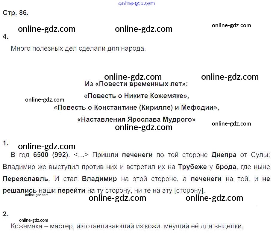 Готовые домашние задания по Литературе за 4 класс Рабочая тетрадь Ефросинина Начальная школа XXI века 2020 - Часть 1. Страницы 86