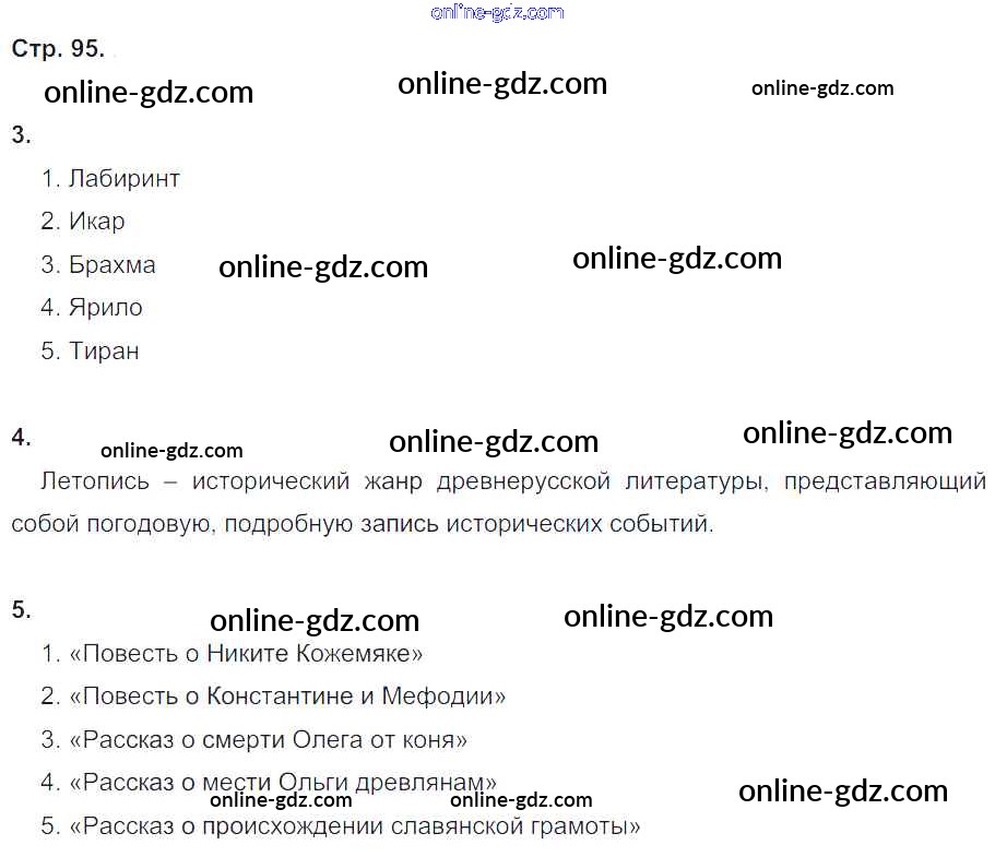 Готовые домашние задания по Литературе за 4 класс Рабочая тетрадь Ефросинина Начальная школа XXI века 2020 - Часть 1. Страницы 95