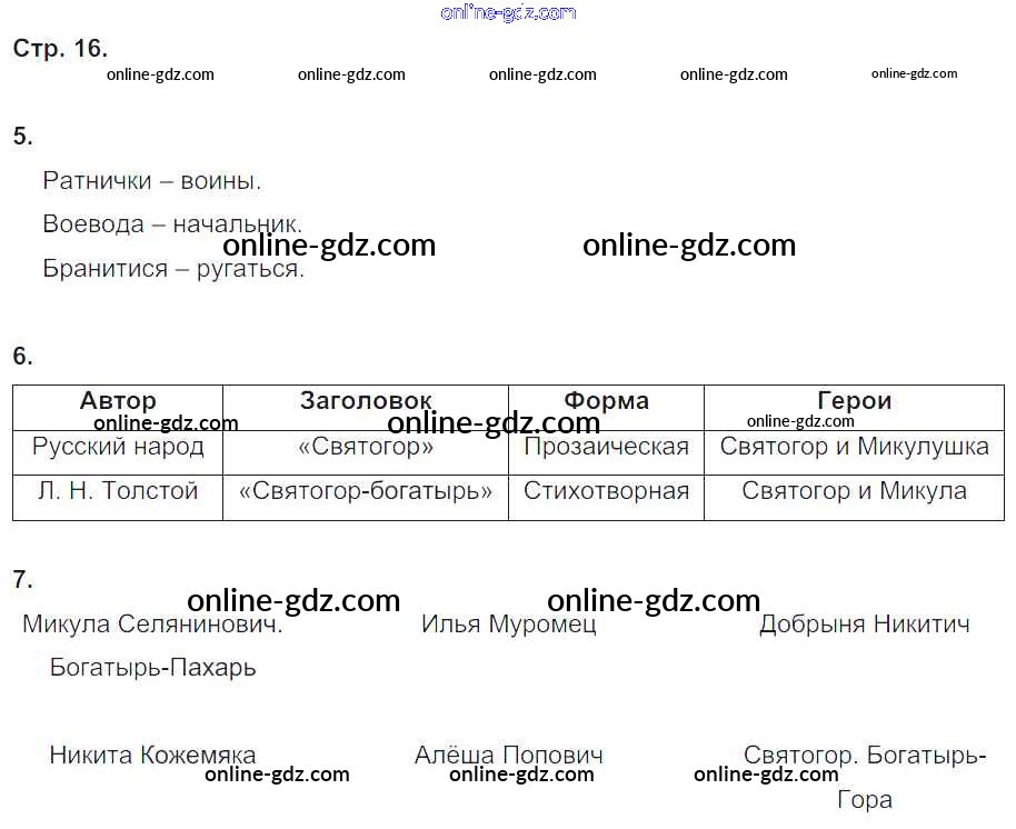 Готовые домашние задания по Литературе за 4 класс Рабочая тетрадь Ефросинина Начальная школа XXI века 2020 - Часть 2. Страницы 16