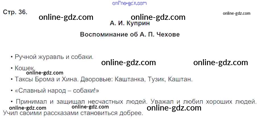 Готовые домашние задания по Литературе за 4 класс Рабочая тетрадь Ефросинина Начальная школа XXI века 2020 - Часть 2. Страницы 36