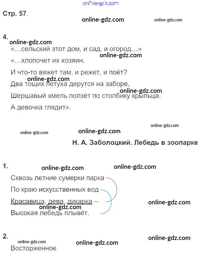 Готовые домашние задания по Литературе за 4 класс Рабочая тетрадь Ефросинина Начальная школа XXI века 2020 - Часть 2. Страницы 57
