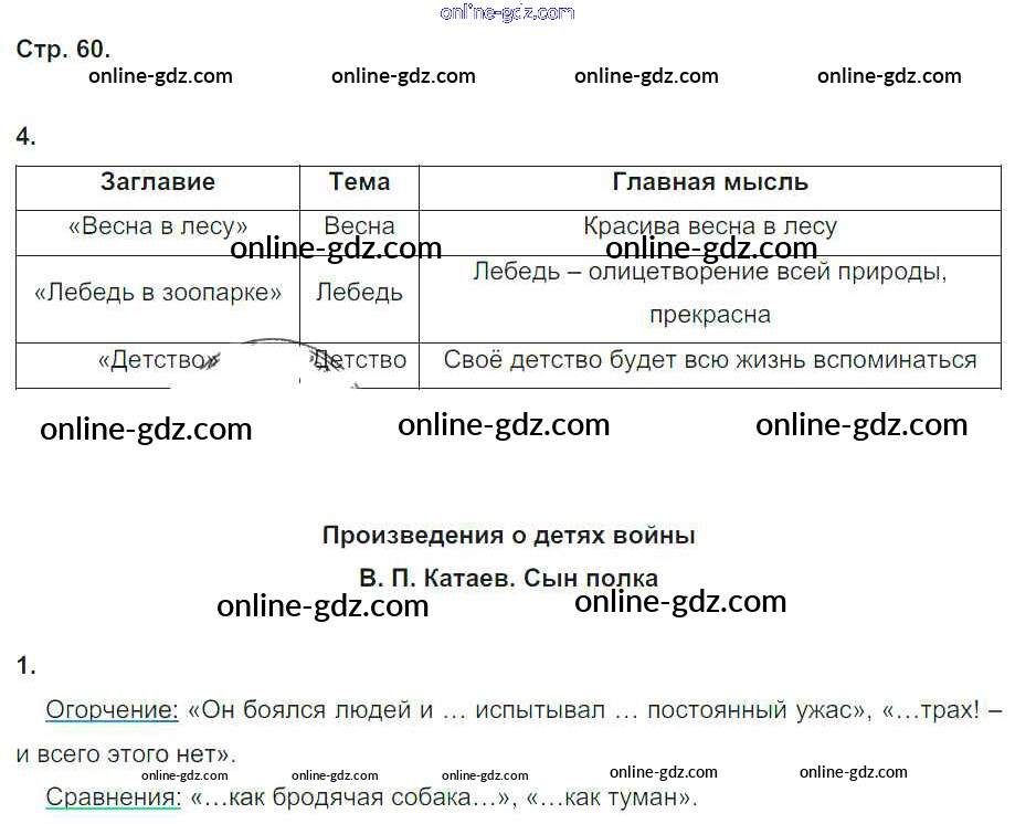 Готовые домашние задания по Литературе за 4 класс Рабочая тетрадь Ефросинина Начальная школа XXI века 2020 - Часть 2. Страницы 60