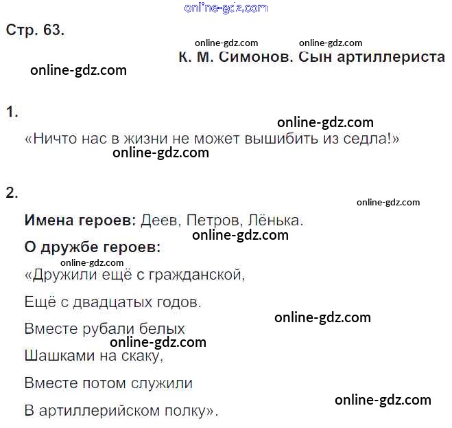 Готовые домашние задания по Литературе за 4 класс Рабочая тетрадь Ефросинина Начальная школа XXI века 2020 - Часть 2. Страницы 63