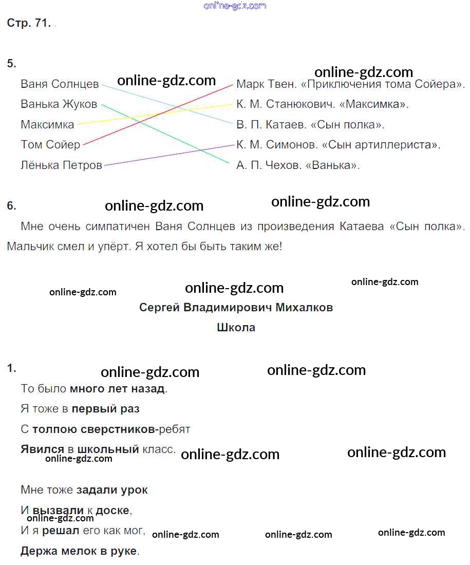 Готовые домашние задания по Литературе за 4 класс Рабочая тетрадь Ефросинина Начальная школа XXI века 2020 - Часть 2. Страницы 71