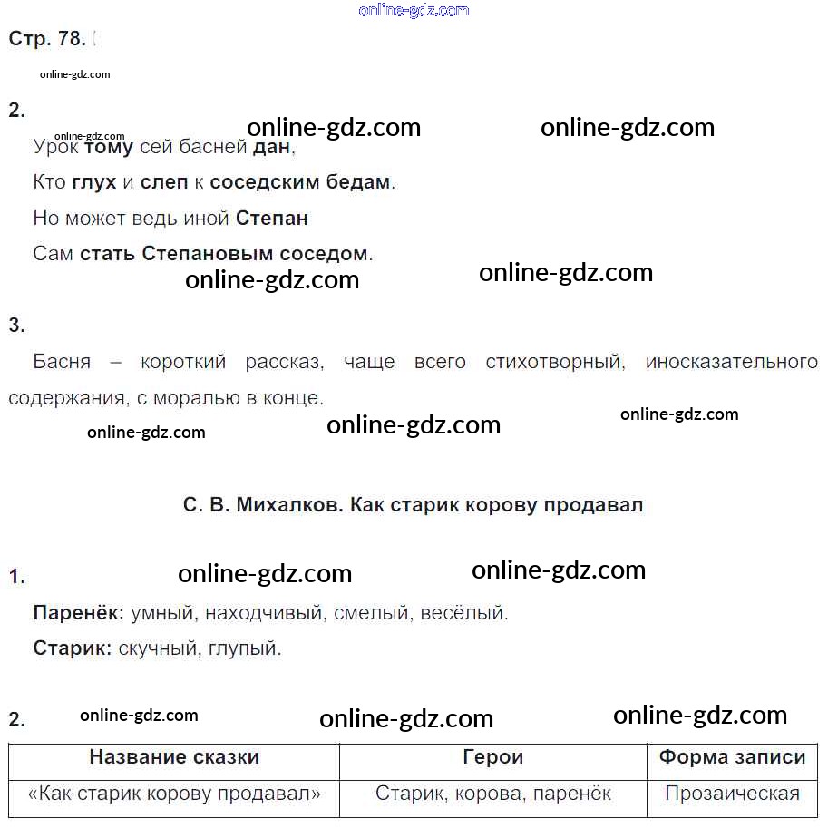 Готовые домашние задания по Литературе за 4 класс Рабочая тетрадь Ефросинина Начальная школа XXI века 2020 - Часть 2. Страницы 78