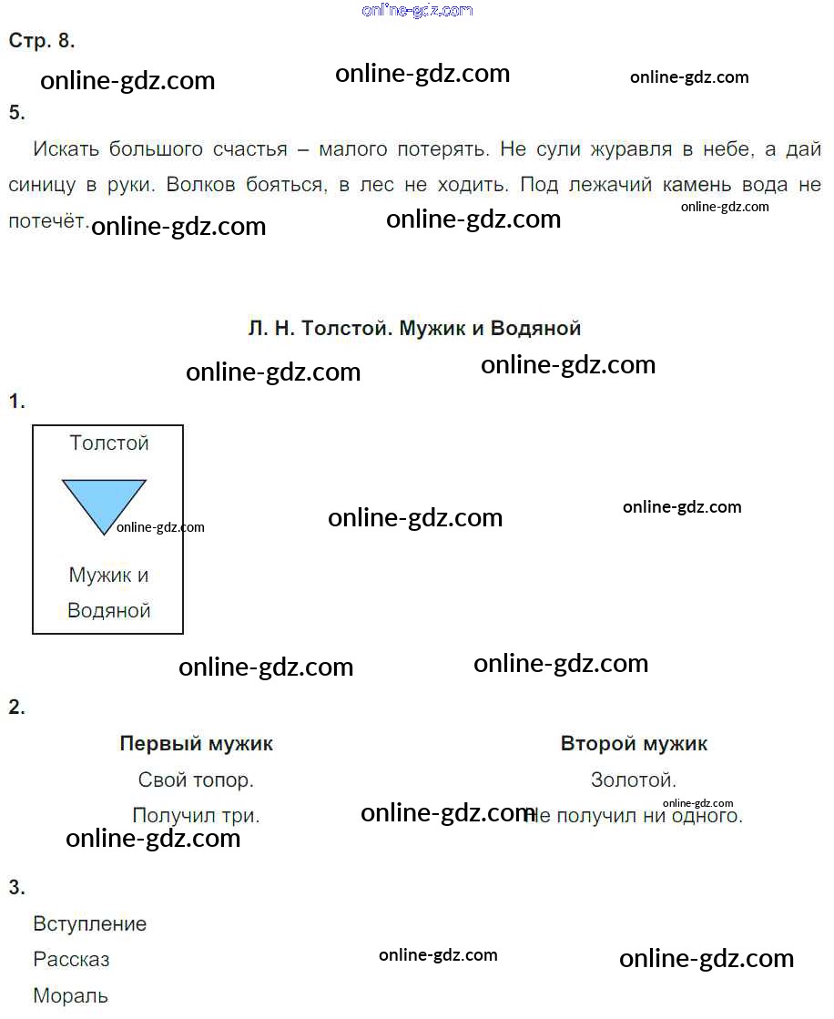 Готовые домашние задания по Литературе за 4 класс Рабочая тетрадь Ефросинина Начальная школа XXI века 2020 - Часть 2. Страницы 8