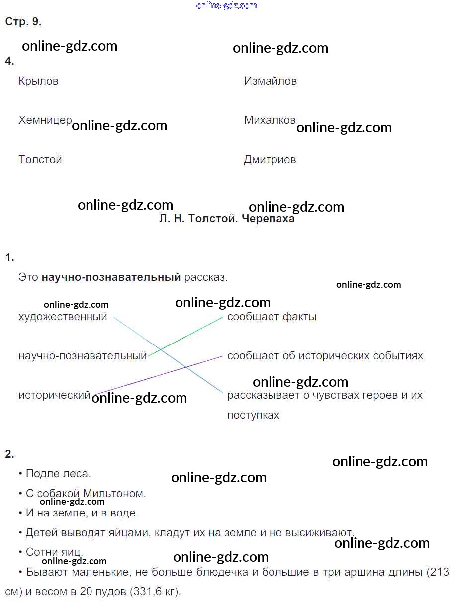 Готовые домашние задания по Литературе за 4 класс Рабочая тетрадь Ефросинина Начальная школа XXI века 2020 - Часть 2. Страницы 9