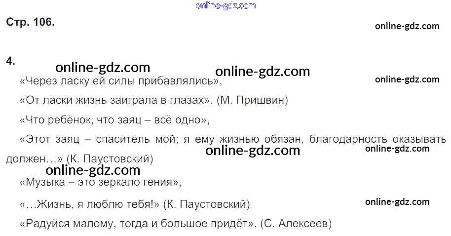 Готовые домашние задания по Литературе за 4 класс Рабочая тетрадь Кубасова Гармония 2019 - Часть 1. Страницы тетради 106
