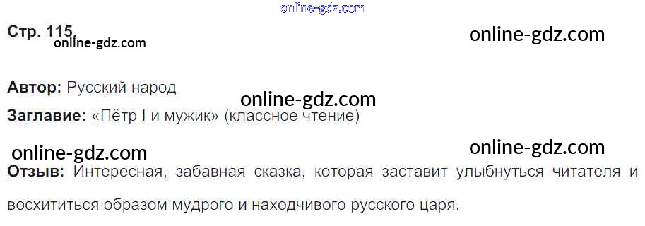 Готовые домашние задания по Литературе за 4 класс Рабочая тетрадь Кубасова Гармония 2019 - Часть 1. Страницы тетради 115