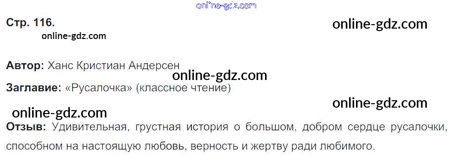 Готовые домашние задания по Литературе за 4 класс Рабочая тетрадь Кубасова Гармония 2019 - Часть 1. Страницы тетради 116