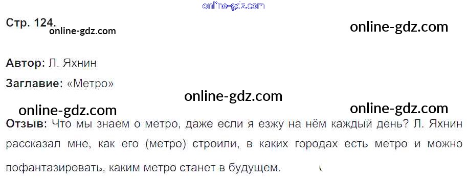 Готовые домашние задания по Литературе за 4 класс Рабочая тетрадь Кубасова Гармония 2019 - Часть 1. Страницы тетради 124