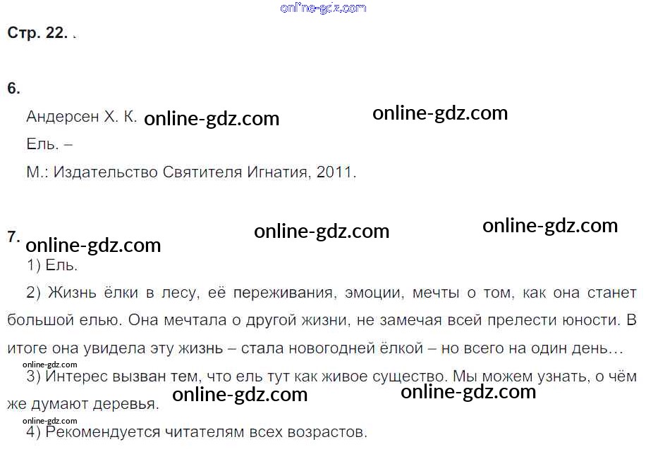 Готовые домашние задания по Литературе за 4 класс Рабочая тетрадь Кубасова Гармония 2019 - Часть 1. Страницы тетради 22
