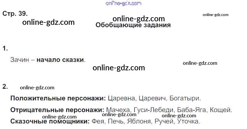 Готовые домашние задания по Литературе за 4 класс Рабочая тетрадь Кубасова Гармония 2019 - Часть 1. Страницы тетради 39