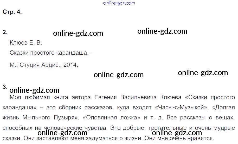 Готовые домашние задания по Литературе за 4 класс Рабочая тетрадь Кубасова Гармония 2019 - Часть 1. Страницы тетради 4