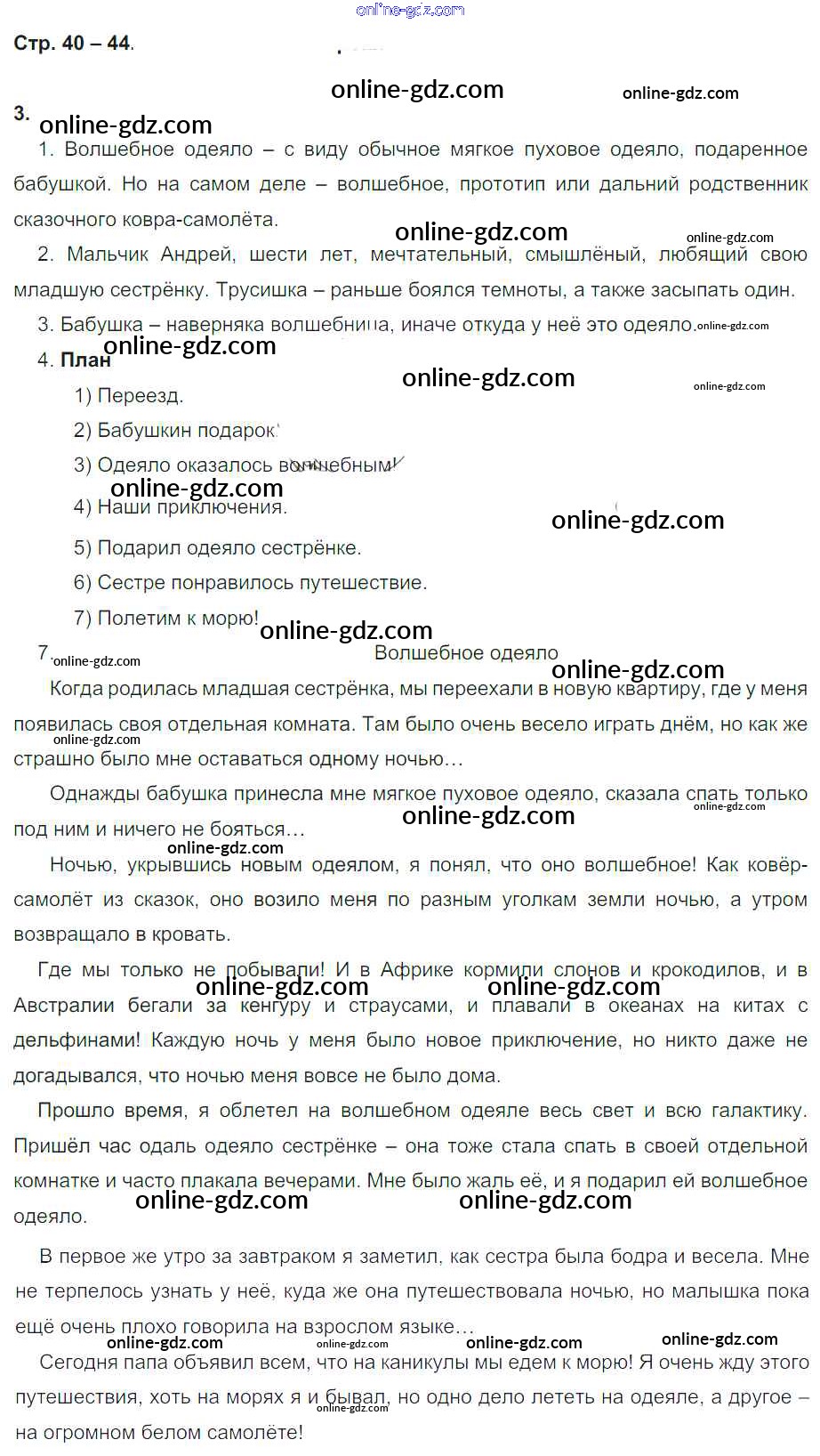 Готовые домашние задания по Литературе за 4 класс Рабочая тетрадь Кубасова Гармония 2019 - Часть 1. Страницы тетради 40