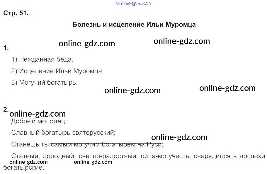 Готовые домашние задания по Литературе за 4 класс Рабочая тетрадь Кубасова Гармония 2019 - Часть 1. Страницы тетради 51