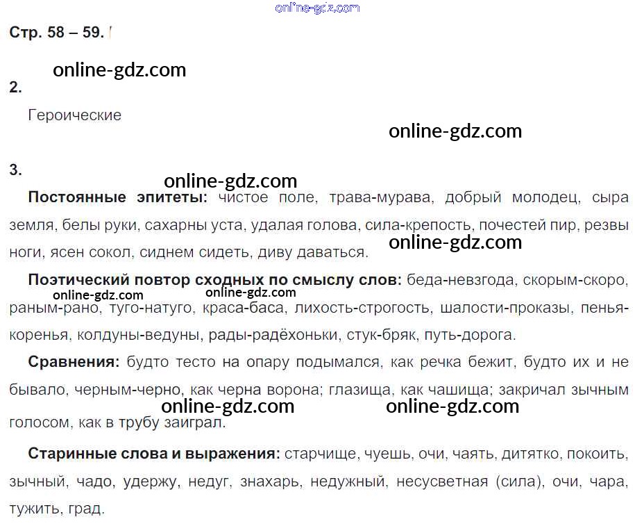 Готовые домашние задания по Литературе за 4 класс Рабочая тетрадь Кубасова Гармония 2019 - Часть 1. Страницы тетради 58